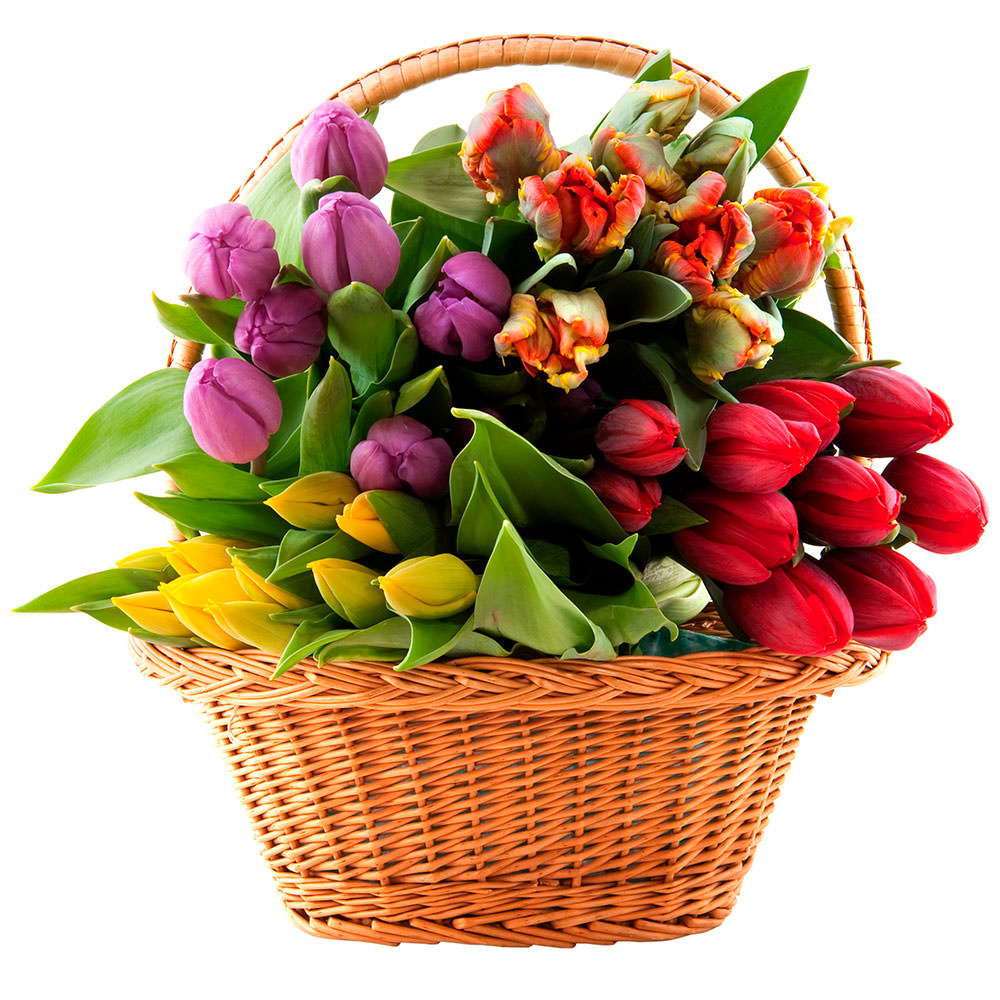Цветы в корзинке «Микс тюльпанов» с доставкой по г Орехово-Зуево: вы можете купить букет в цветочном интернет-магазине «Флормания» по цене от 3190 руб.